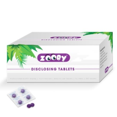 Neue Plaque wird rot und ältere Plaque blau gefärbt - gut für die Anwendung zuhause